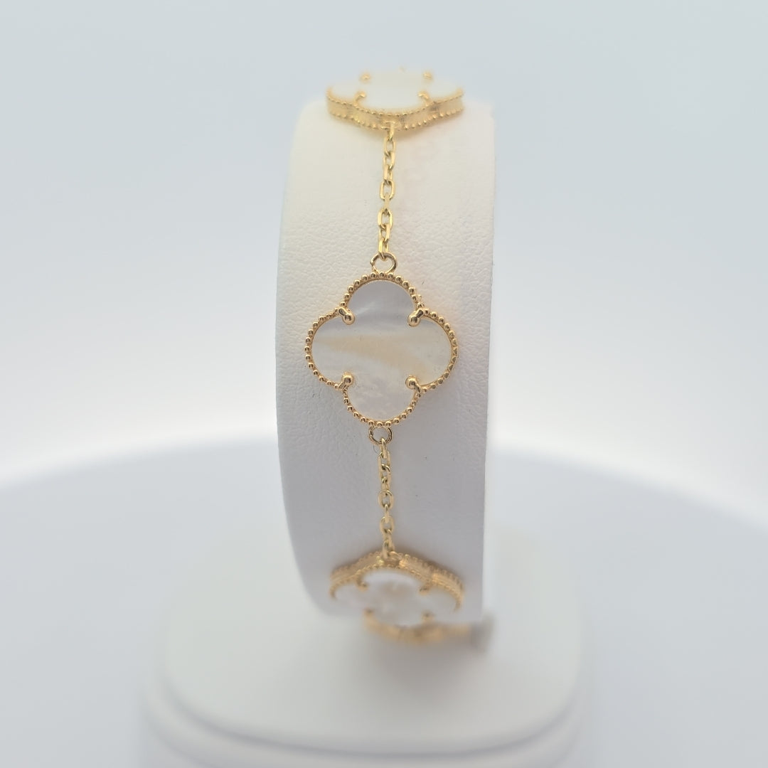 14Kt White Five Clover 13MM Bracelet