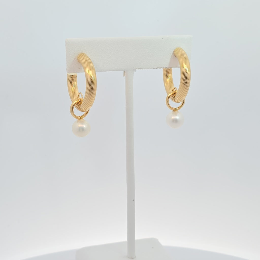 14K Italian Hoops Earrings With Dangling Pearl 22.5 MM